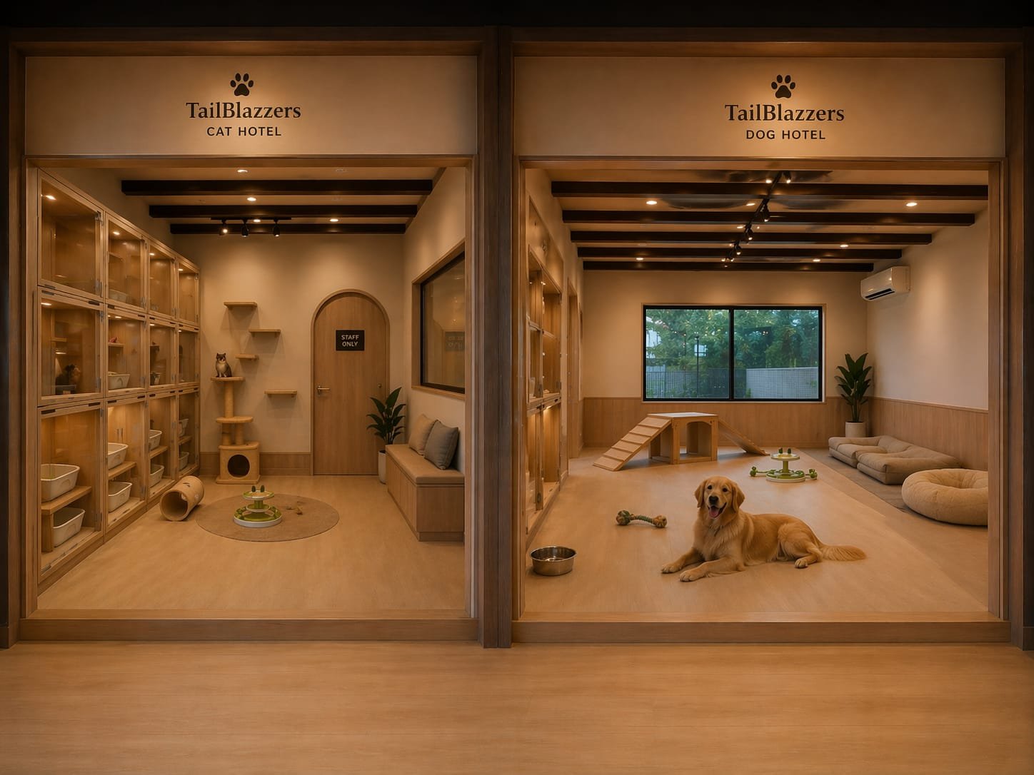 Area penginapan yang dilengkapi dengan cctv untuk memantau hewan kesayangan Anda