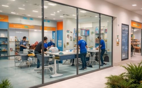 Area pendaftaraan dan pembayaran yang dilengkapi dengan cafe